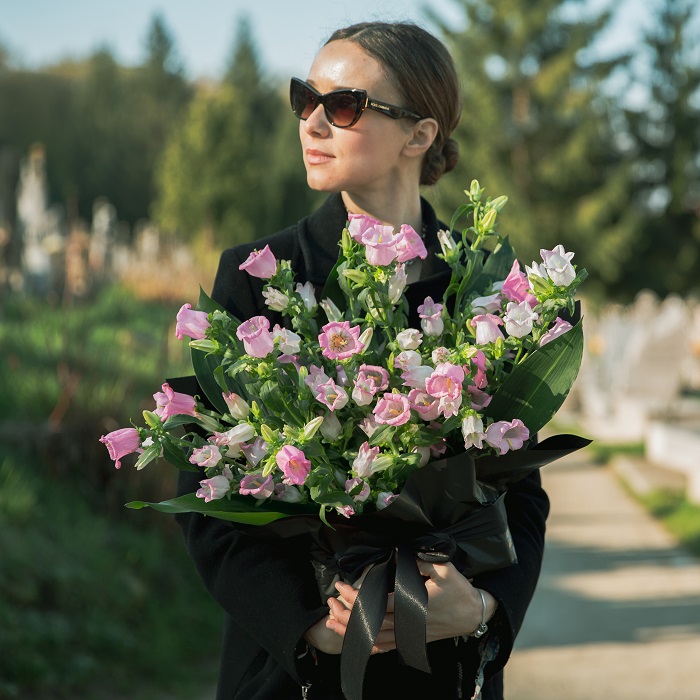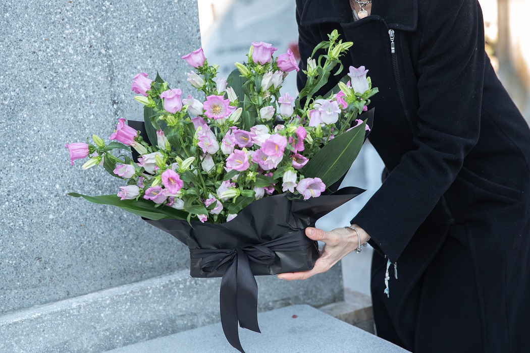 - Aranjament funerar în bază de burete umde învelit în hârtie neagră