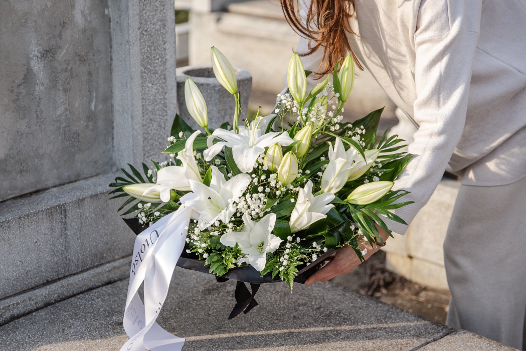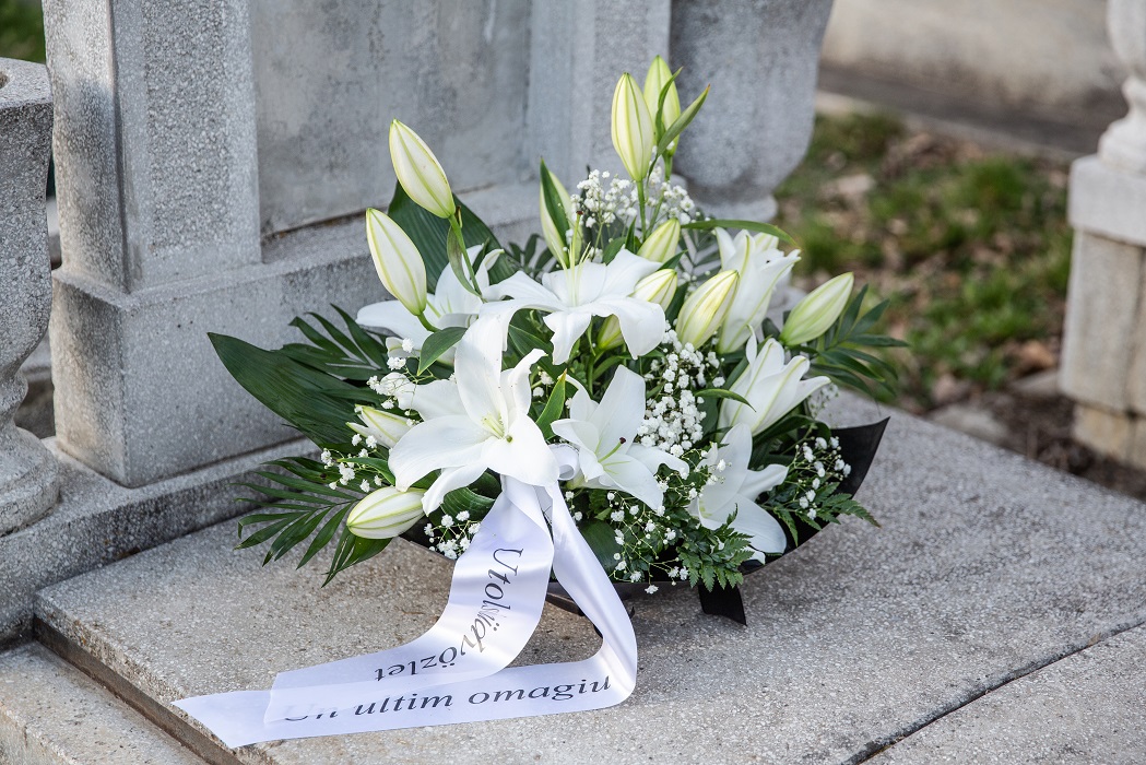 - Aranjament funerar în burete umed, învelită în hârtie neagră