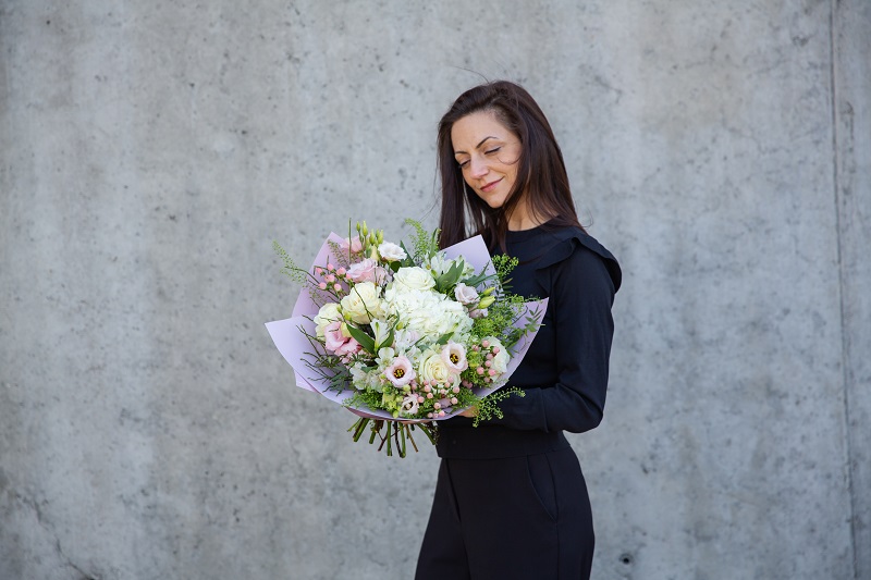 Buchet cu mix de flori delicate în nuanțe de roz-alb
