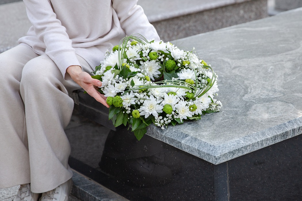 Mesajul va apare pe panglica funerară (dacă se dorește), fără cost suplimentar.